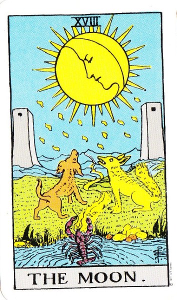 Most often it is represented as a beautiful card that shows the stillness, spaciousness, uncertainty and emptiness of moonlight nights. This is often a reflection of our mental stage at the time we draw this card. There are almost always creatures in the card and often hills in the background indicating we are overcoming something challenging.